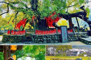 - 大概行驶3小时,我们就能到达这个极具山水田园风情的地方婺源,首先我们游览严田古樟景区。古樟号称“天下第一樟”,需要10个人环绕才能抱住。这颗古樟虽显得沧桑,但树冠枝繁叶茂,一直被当地人视为“树神”。