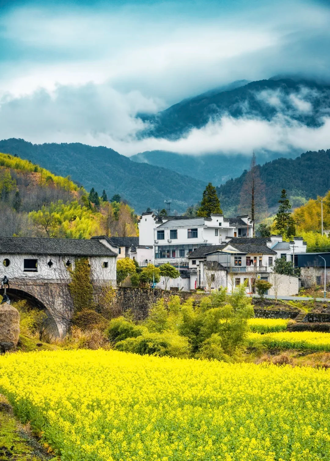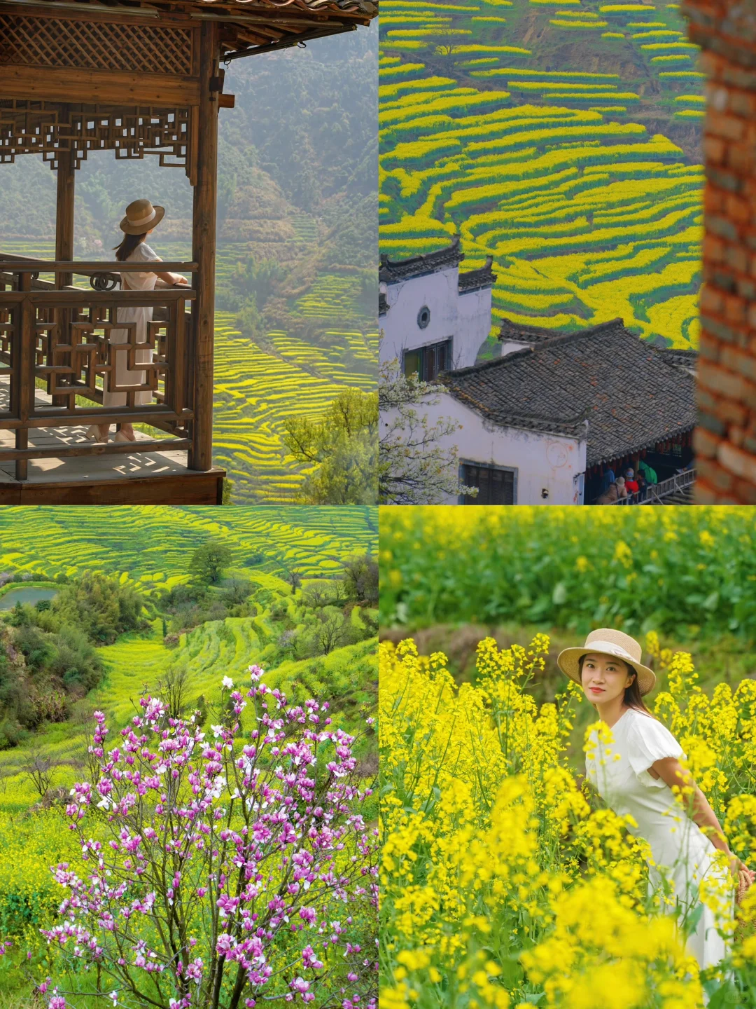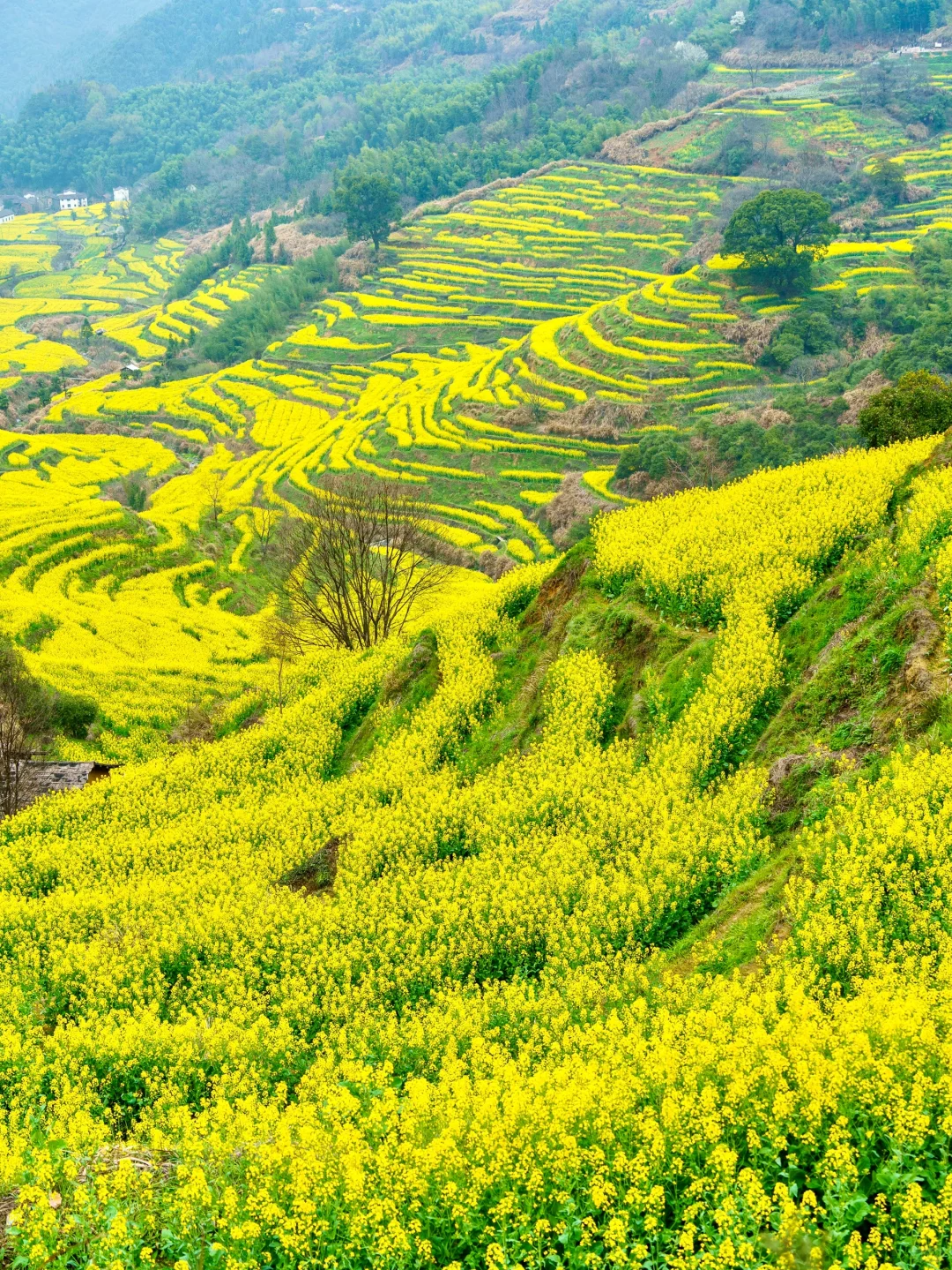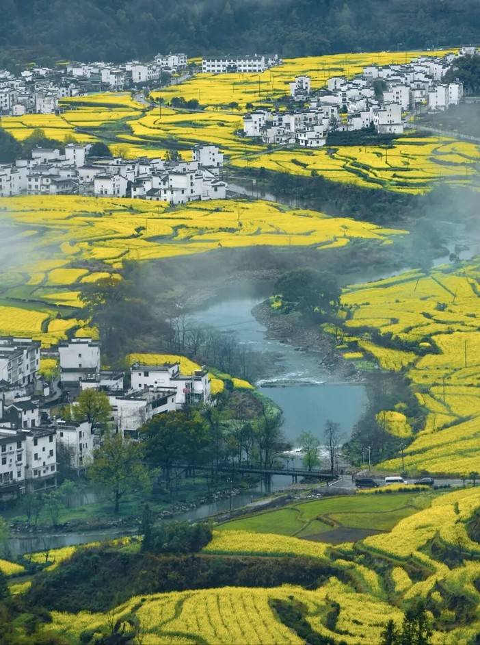 三月的油菜花海撞上烟雨长廊这才是皖南