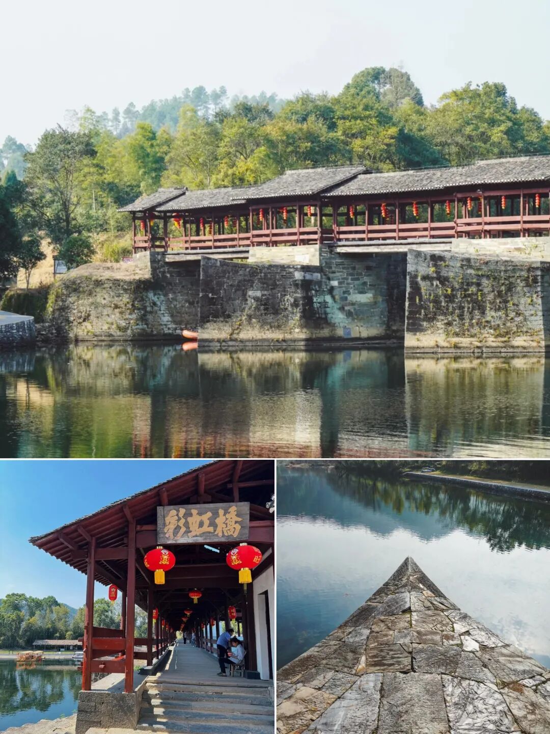 彩虹桥被众多媒体誉为中国最美的廊桥,取名于唐诗“两水夹明镜,双桥落彩虹”,彩虹桥两岸,群山如黛,桥下绿水长流,风景优美魅力十足。