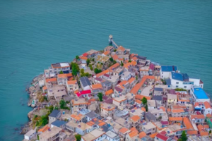 在这里可以参观羊山岛博物馆,展示了羊山岛地区的文化历史、风土人情、科普社教和产业资源,凸显羊山岛海洋地域特色。沿街拾阶而上,可以看到巨幅羲和浴日雕塑、羲和宫,霜降时节。顺着幽长的登山小径,漫步于松林之中,站在观桥台前抚栏凭眺,海天相间处一座大桥映入眼帘,宛如一条巨龙,卧波跨海,飞架南北。最后我们可以来到彩虹灯塔,在拦海大堤、护坡、栈道,绘制彩虹、沙滩、斑马线等元素丰富的文化墙,展示美丽海岛新形象。傍晚还欣赏这里醉美的日落!