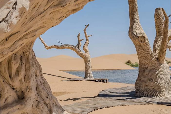 - 早餐后,集合前往乌海湖游览打卡乌海湖、网红枯树、网红沙漠公路、乌海沙漠!