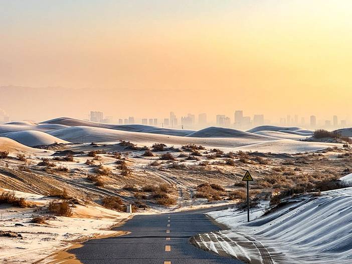 抵达乌海湖之后,乘坐景区摆渡车前往乌海沙漠。我们先到网红枯树打卡,这里是电影《乌海》取景地,一半沙漠一半湖,沙漠与湖形成了独特的景观。走在乌海沙漠之中,感受大漠孤烟美景!之后前往网红沙漠公路打卡拍照,公路、沙漠、城市于一体,在这里打卡很出片哦!