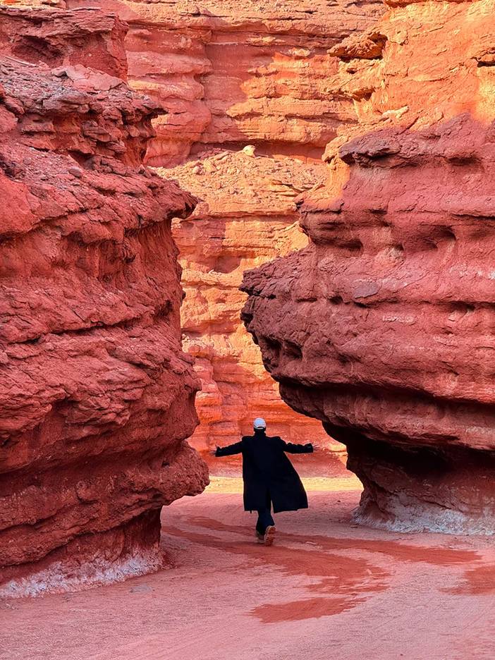 跟着肖战打卡 ~西部梦幻大峡谷,位于阿拉善左旗敖伦布拉格镇境内的阴山,被牧民誉为“七彩神山”,大山是红、黄、灰、白等多种颜色,在夕阳的映衬下,山体流光溢彩,如七色哈达环绕,如梦如幻。全长5公里,受早期流水侵蚀作用和后期的风蚀作用影响,形成了结合雅丹地貌与丹霞地貌为一体的独特景观。
