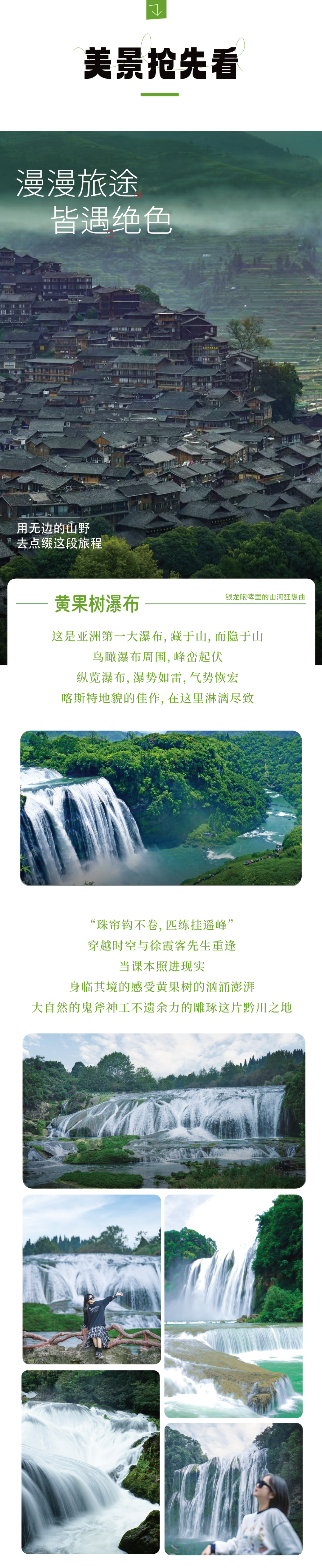 3)门票:西江千户苗寨110元,黄果树180元需自行预约2.19最早时间段门票+摆渡车,小七孔门票+摆渡车170;门票价格供参考,以实际为准。