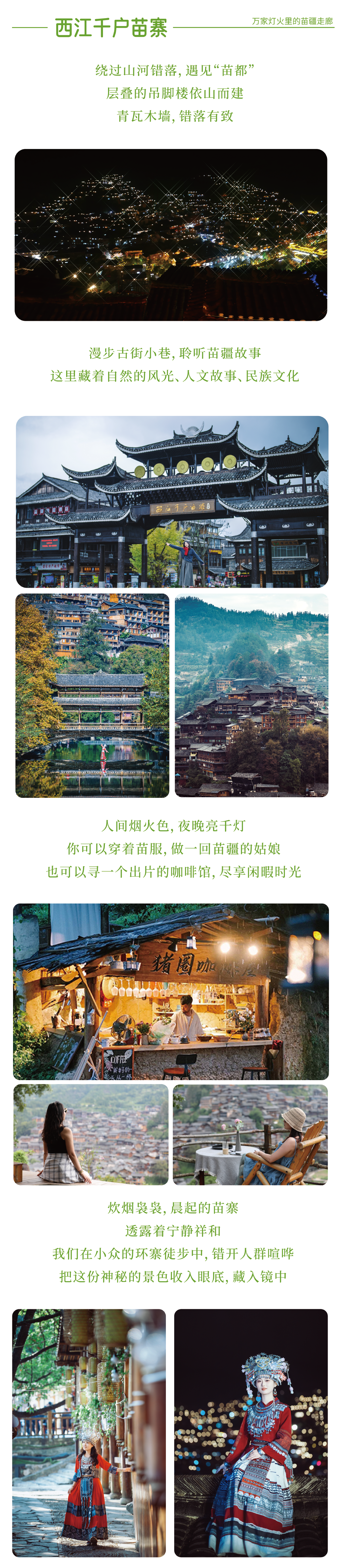 ③ 西江千户苗寨内因地理位置原因,入住的民宿酒店均没有达到星级标准,条件也比市区上的酒店差一些,但保证干净卫生舒适,请大家谅解。